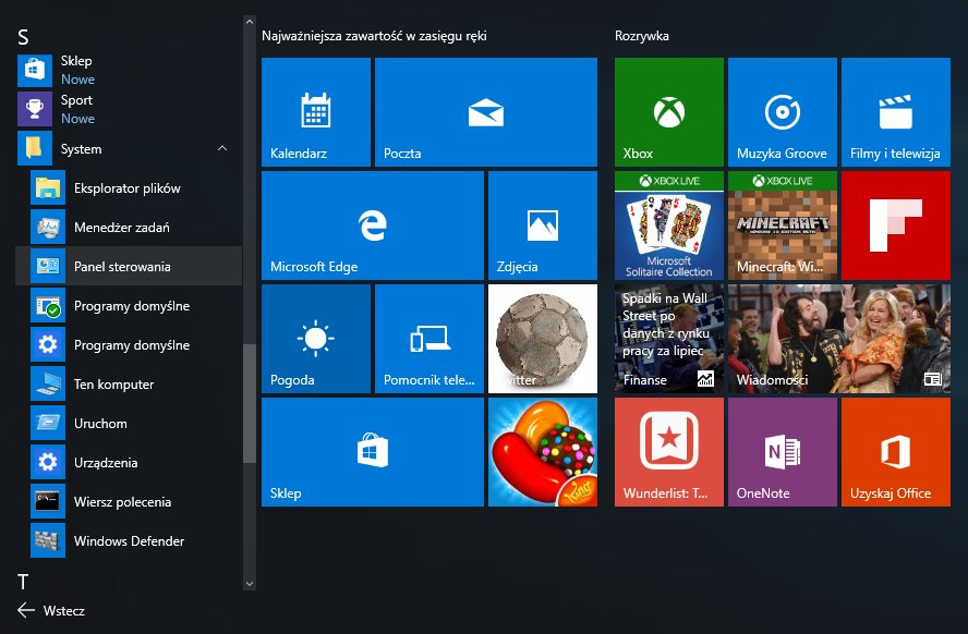 Następnie należy wybrać opcję System i Zabezpieczenia |