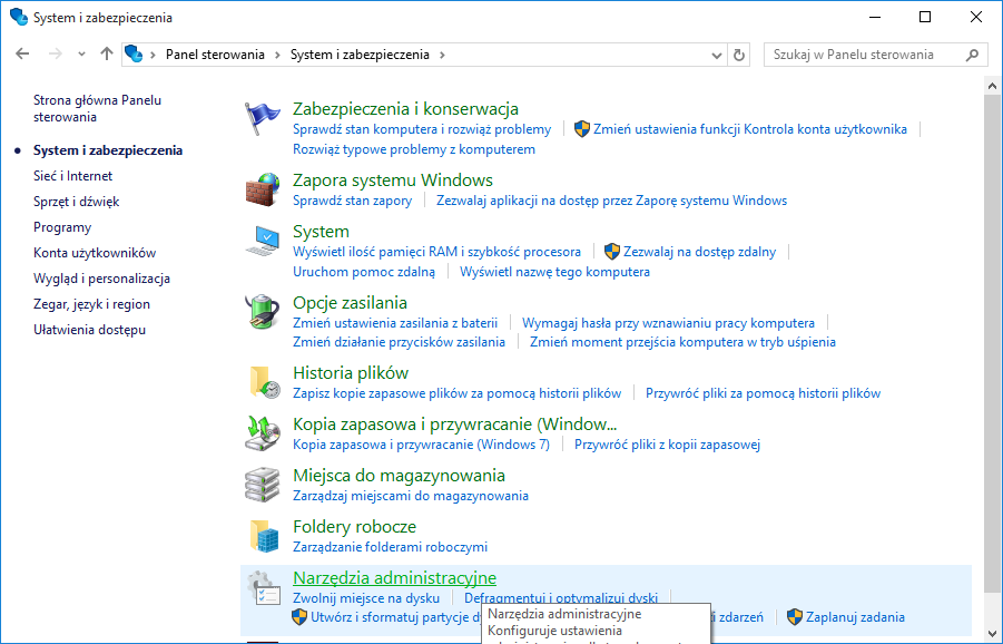Proszę wybrać Narzędzia Administracyjne |