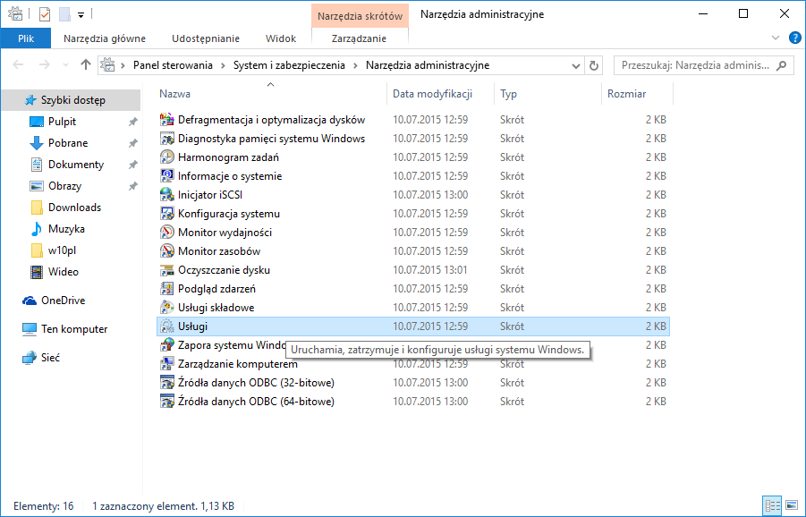 Następnie Usługi |