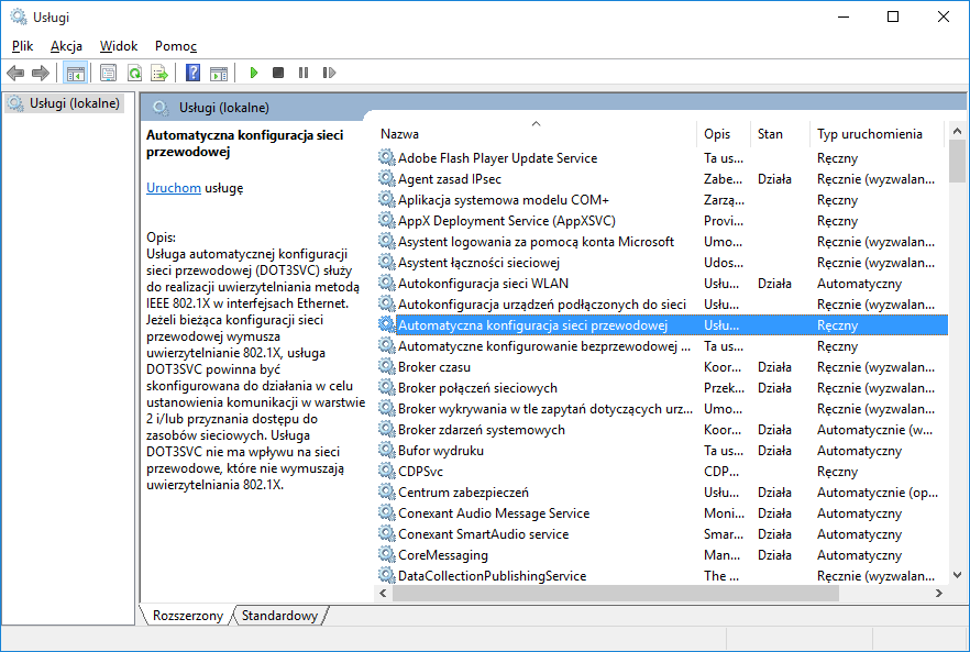 W Proszę ustawić Typ uruchamiania -> Automatyczny a następnie wybrać przycisk Uruchom i nacisnąć OK |