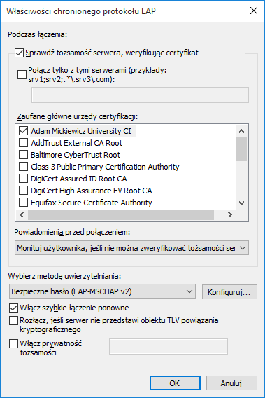 Należy zaznaczyć certyfikat i wypełnić według wzoru a następnie nacisnąć Konfiguruj |