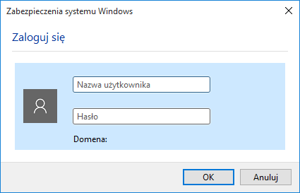 Pojawi się okno do wpisania poświadczeń |