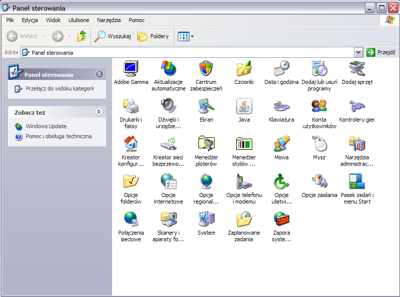 Przed rozpoczęciem konfiguracji należy upewnić się, czy spełnione są wymagania wyspecyfikowane na tej stronie: http://eduroam.amu.edu.pl/zasady.html - w szczególności wymagania dotyczące hasła. Konfigurację należy rozpocząć od pobrania i zainstalowania elektronicznego certyfikatu, który ma chronić komputer przed przypadkowym łączeniem się z fałszywymi punktami dostępu bezprzewodowego. Dlatego ważne jest, aby pobrać certyfikat bezpośrednio ze strony webowej UAM pod adresem eduroam.amu.edu.pl w dziale Certyfikaty. UWAGA! Nie należy instalować certyfikatu otrzymanego od innych osób lub pochodzącego z innych źródeł! Instrukcja krok po kroku instalacji certyfikatu znajduje się tutaj. Podczas konfiguracji należy zwrócić szczególną uwagę na pozaznaczane i poodznaczane pola. W celu rozpoczęcia konfiguracji należy wyświetlić Panel sterowania. Otwarte okno powinno wyglądać tak: |