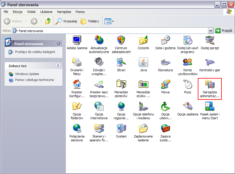 Następnie należy wybrać opcję Narzędzia administracyjne. |