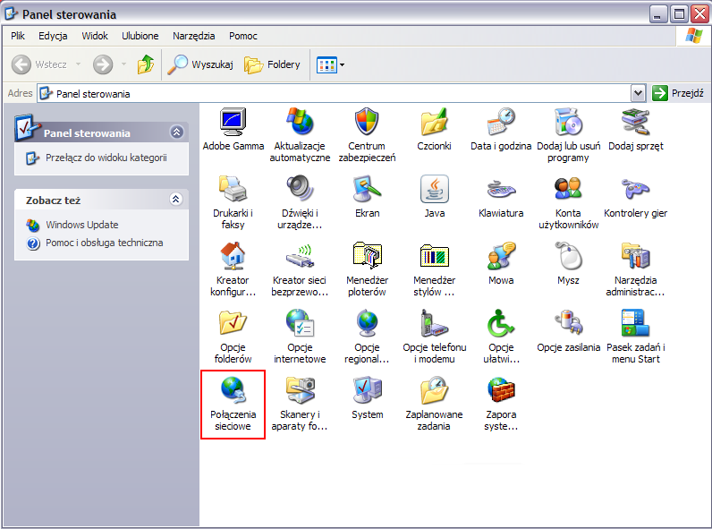 Następnie należy wybrać opcję Połączenia sieciowe. Otwarte okno powinno wyglądać tak: |