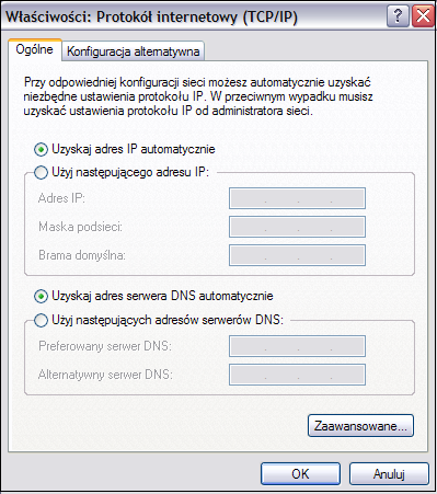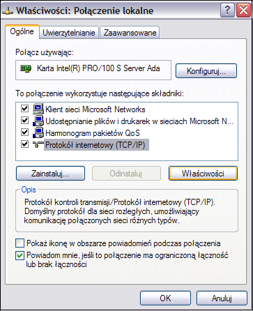 Następnie należy zaznaczyć Protokół internetowy (TCP/IP) i wybrać przycisk właściwości |
