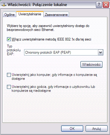 Następnie należy wybrać zakładkę Uwierzytelnianie i otwarte okno wypełnić według wzoru poniżej: |